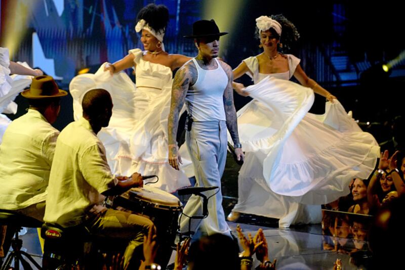 (L-R) Normani Kordei, Ally Brooke, and Lauren Jauregui of music group Fifth Harmony perform onstage during the 2017 MTV Video Music Awards at The Forum on August 27, 2017 in Inglewood, California. (Photo by Frederick M. Brown/Getty Images)