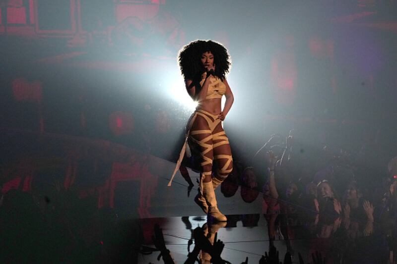 2024 MTV Video Music Awards - Show ELMONT, NEW YORK - SEPTEMBER 11: Megan Thee Stallion (C) performs on stage during the 2024 MTV Video Music Awards at UBS Arena on September 11, 2024 in Elmont, New York. (Photo by Arturo Holmes/Getty Images) (Arturo Holmes/Getty Images)