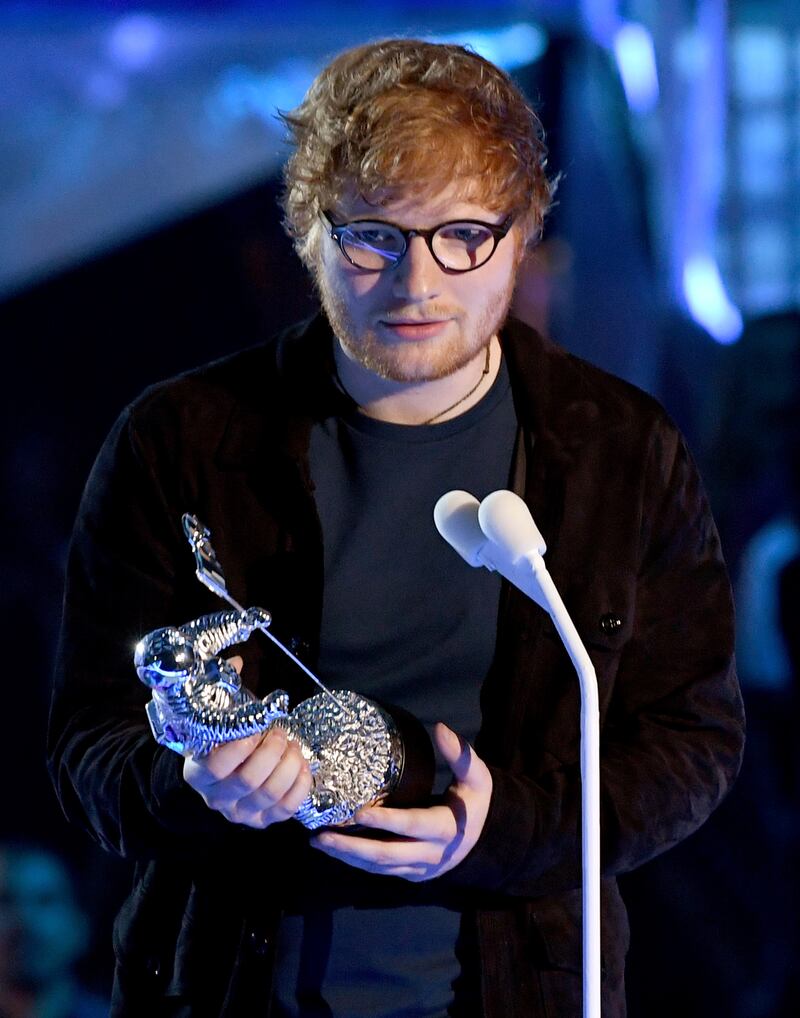 INGLEWOOD, CA - AUGUST 27: Ed Sheeran accepts the Artist of the Year award onstage during the 2017 MTV Video Music Awards at The Forum on August 27, 2017 in Inglewood, California. (Photo by Kevin Winter/Getty Images)