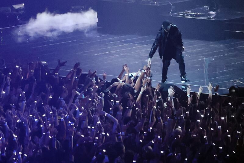 2024 MTV Video Music Awards - Show ELMONT, NEW YORK - SEPTEMBER 11: Eminem (center R) performs on stage during the 2024 MTV Video Music Awards at UBS Arena on September 11, 2024 in Elmont, New York. (Photo by Arturo Holmes/Getty Images) (Arturo Holmes/Getty Images)