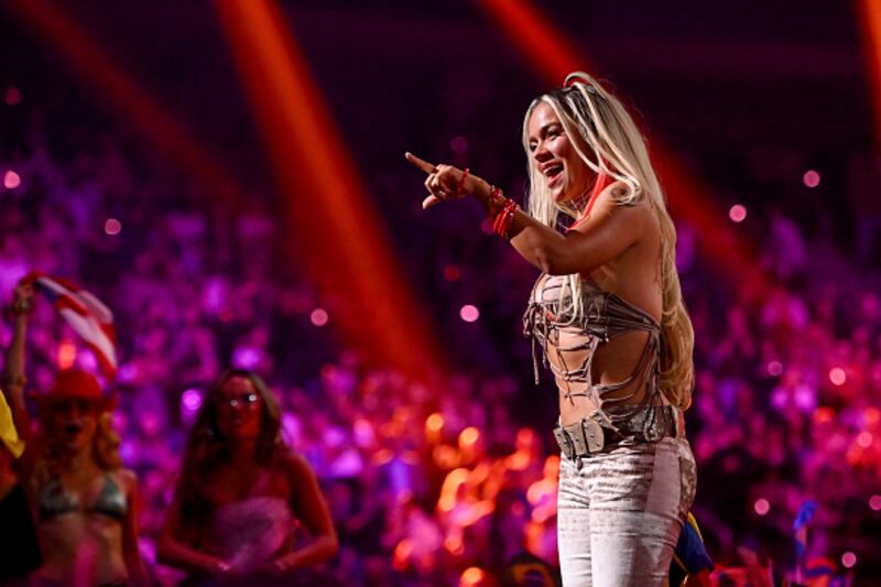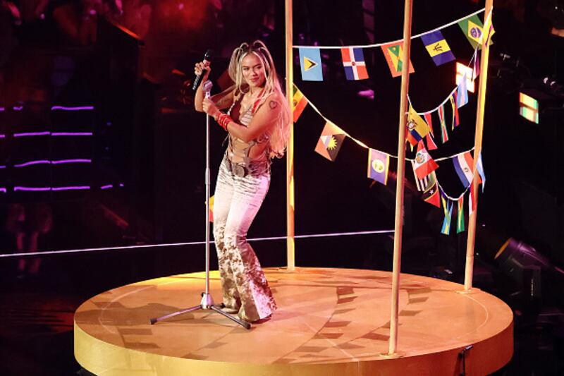 2024 MTV Video Music Awards - Show ELMONT, NEW YORK - SEPTEMBER 11: Karol G performs on stage during the 2024 MTV Video Music Awards at UBS Arena on September 11, 2024 in Elmont, New York. (Photo by Noam Galai/Getty Images for MTV) (Noam Galai/Getty Images for MTV)