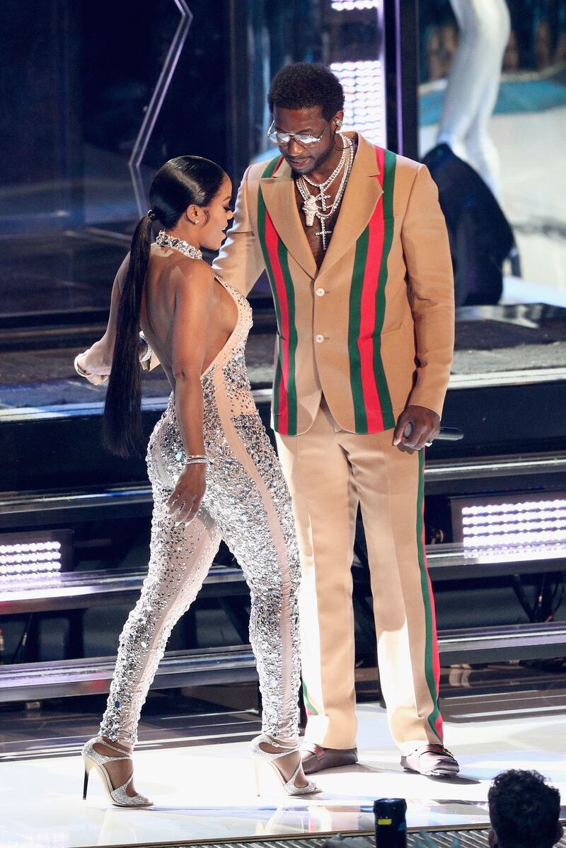 INGLEWOOD, CA - AUGUST 27: Gucci Mane (R) performs onstage during the 2017 MTV Video Music Awards at The Forum on August 27, 2017 in Inglewood, California. (Photo by Frederick M. Brown/Getty Images)