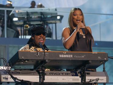 VH1 Divas Duets - Show LAS VEGAS - MAY 22: Singers Stevie Wonder and Queen Latifah perform at the VH1 Divas Duets, a concert to benefit the VH1 Save the Music Foundation held at the MGM Grand Garden Arena on May 22nd, 2003 in Las Vegas, Nevada. (Photo by Frank Micelotta/Getty Images) (Frank Micelotta/Getty Images)
