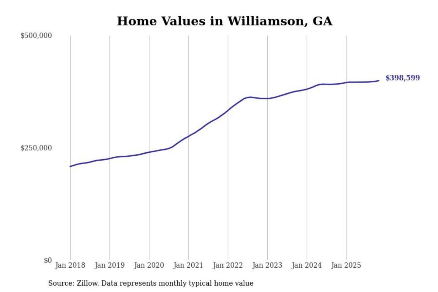 Stacker compiled a list of cities with the most expensive homes in the Atlanta-Sandy Springs-Alpharetta, GA metro area using data from Zillow. Charts show the monthly typical home value since January 2018.