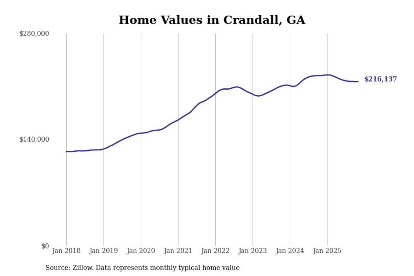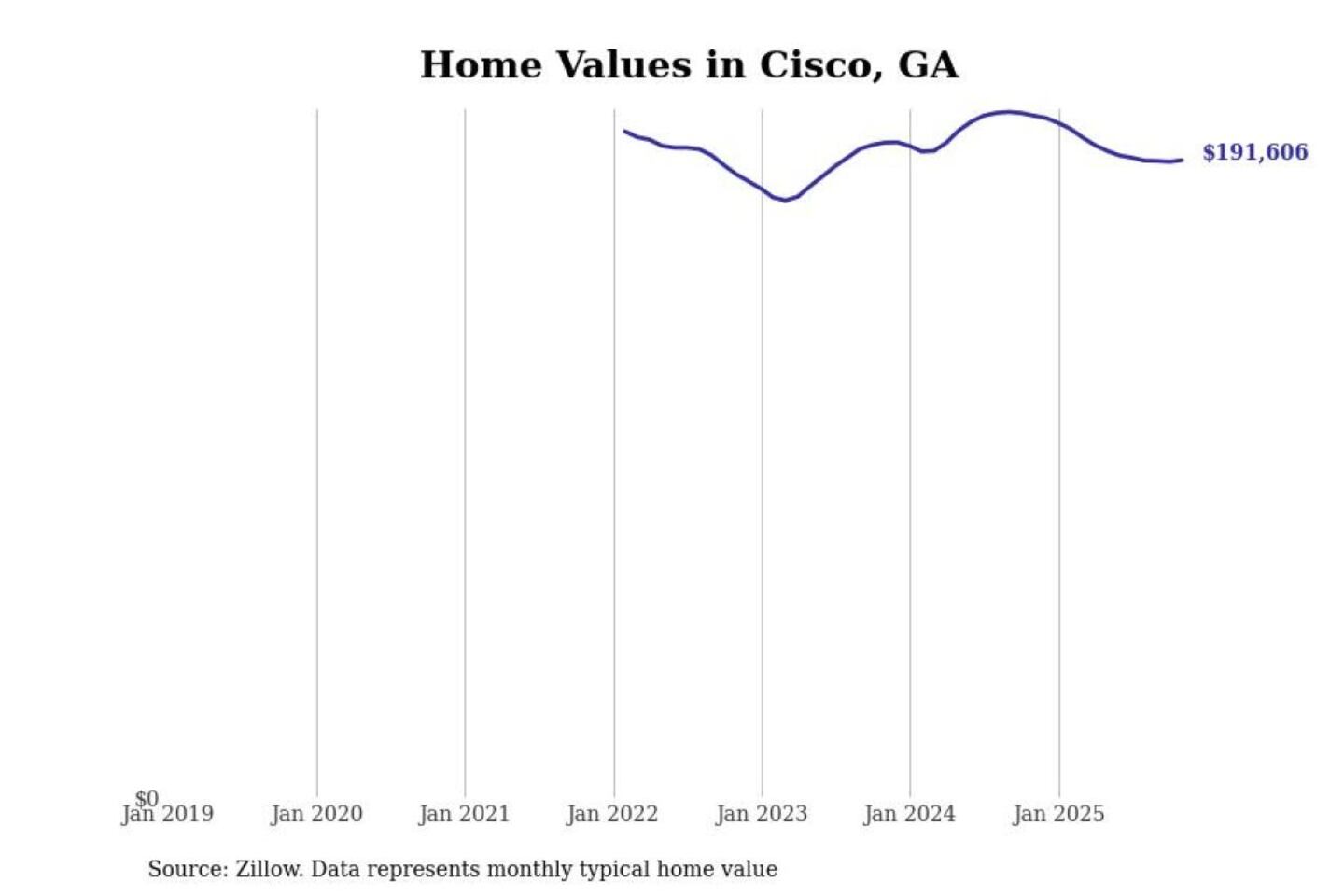 Stacker compiled a list of cities with the most expensive homes in the Dalton, GA metro area using data from Zillow. Charts show the monthly typical home value since January 2018.
