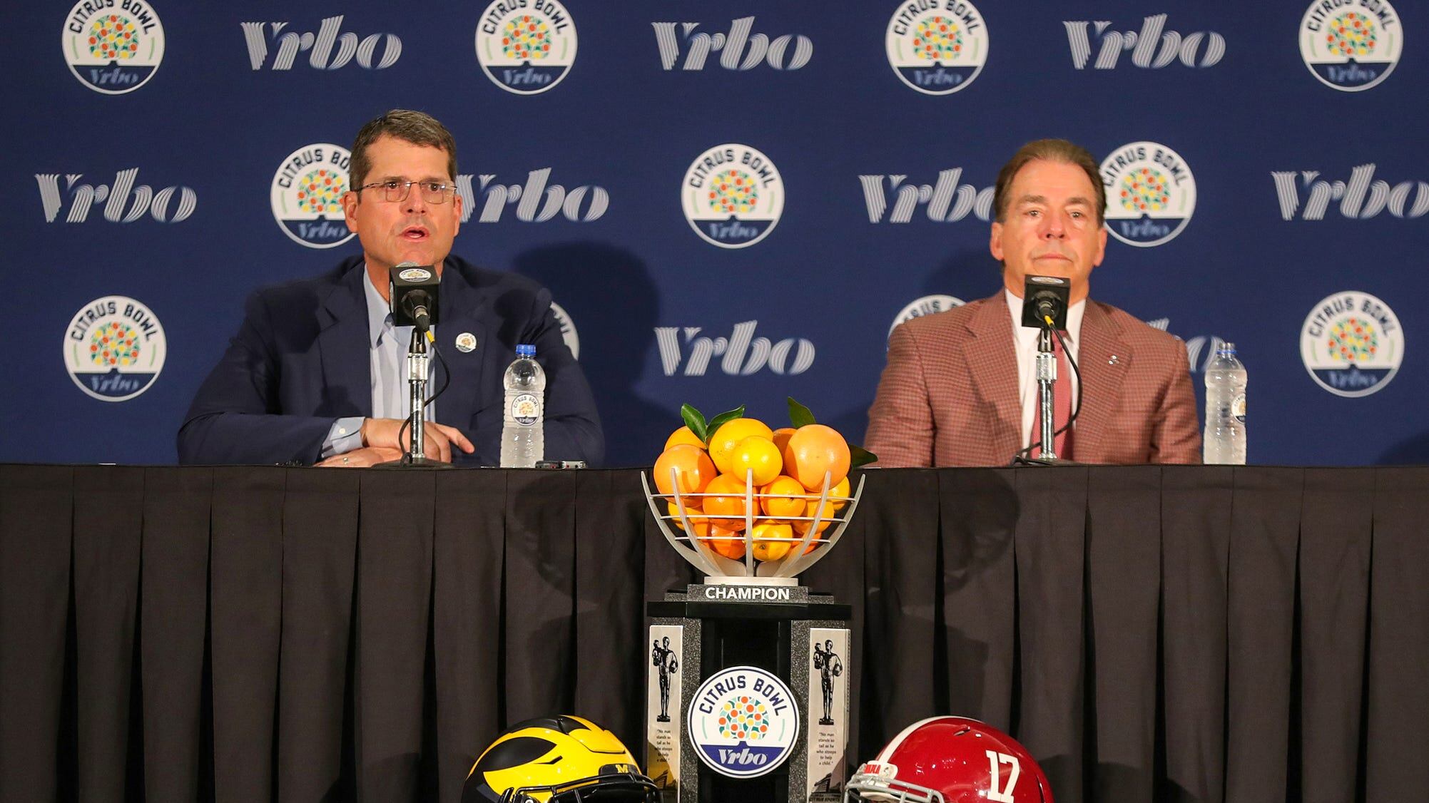 This matchup of two of the most iconic programs in college football is a tantalizing playoff semifinal. The Crimson Tide and Wolverines have met just three times and just once during the tenures of Jim Harbaugh and Nick Saban. That game came on Jan. 1, 2020, when Alabama won 35-16 in the Citrus Bowl.