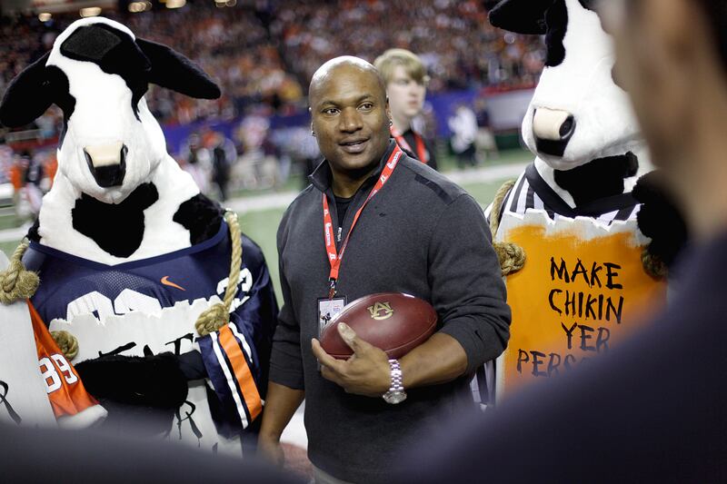 Photos: Bo Jackson through the years 2017: Former Auburn tailback Bo Jackson, right, and ex-Georgia star Herschel Walker speak during the first half of the Southeastern Conference championship NCAA college football game between Auburn and Georgia, Saturday, Dec. 2, 2017, in Atlanta. They were recognized on the field during a second-quarter time out. Jackson won the Heisman Trophy in 1985, and Walker captured it three years earlier. (AP Photo/John Bazemore)