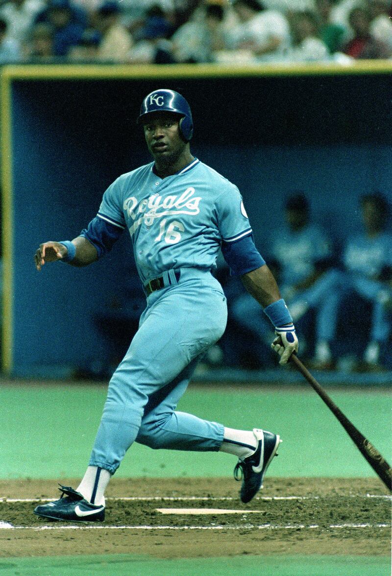 Photos: Bo Jackson through the years 1989: Kansas City Royals outfielder Bo Jackson helps his fleet-footed toddler, 1-year-old Nicholas, run from third base to home during the father-kids game in Kansas City, Mo., Aug. 10, 1989. (AP Photo/Cliff Schiappa)