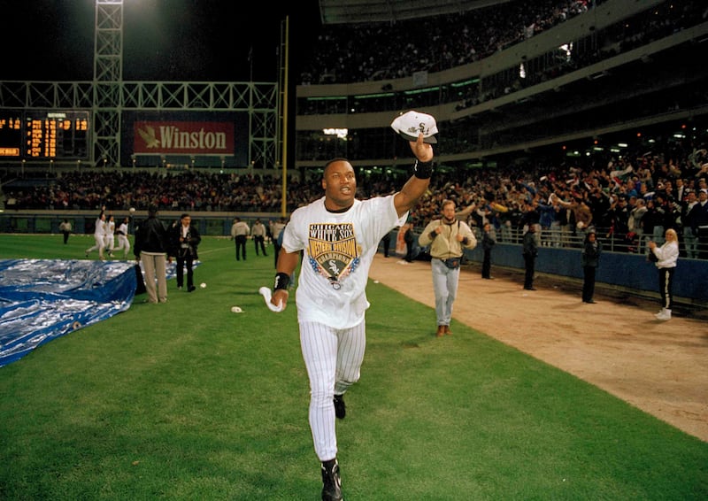 Photos: Bo Jackson through the years 1993: Chicago White Sox player Bo Jackson waves to the crowd as he takes a victory lap around Comiskey Park in Chicago following his team's 4-2 victory over the Seattle Mariners, Sept. 27, 1993. Jackson's three-run homer in the sixth inning provided the winning score as the White Sox won the American League Western Division title. (AP Photo/Jonathan Kirn)