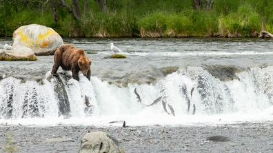 “Despite his broken jaw, he remains one of the biggest, baddest bears at Brooks River,” Mike Fitz, explore.org naturalist, said, according to The Associated Press.