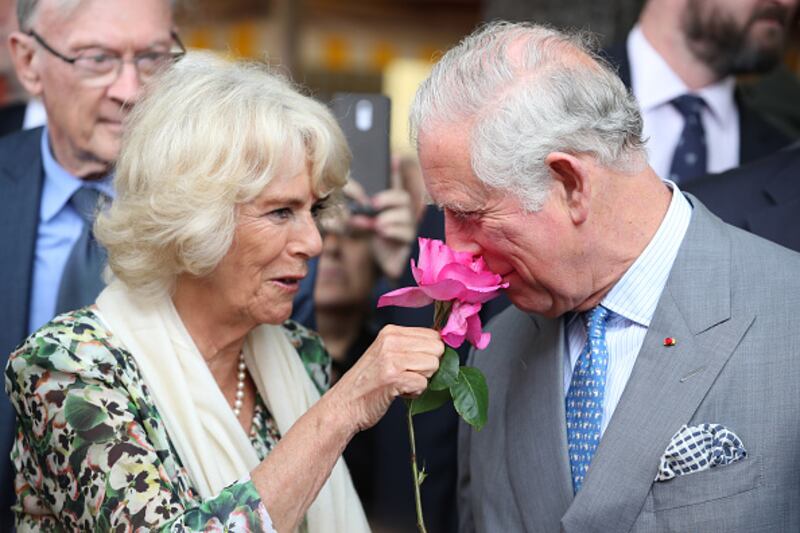 Through the years Prince Charles, Prince of Wales smells a rose offered to him by Camilla, Duchess of Cornwall during a visit to Nice Flower Market on May 9, 2018 in Nice, France. Prince Charles, Prince of Wales and Camilla, Duchess of Cornwall are on a two day Royal tour to France which will then be followed by a three day visit to Greece. (Photo by Chris Jackson/Getty Images) (Chris Jackson/Getty Images)