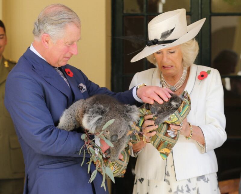 Through the years Prince Charles, Prince of Wales holds a koala called Kao whilst Camilla, Duchess of Cornwall holds a koala called Matilda at Government House on November 7, 2012 in Adelaide, Australia. The Royal couple are in Australia on the second leg of a Diamond Jubilee Tour taking in Papua New Guinea, Australia and New Zealand. (Photo by Chris Jackson/Getty Images) (Chris Jackson/Getty Images)