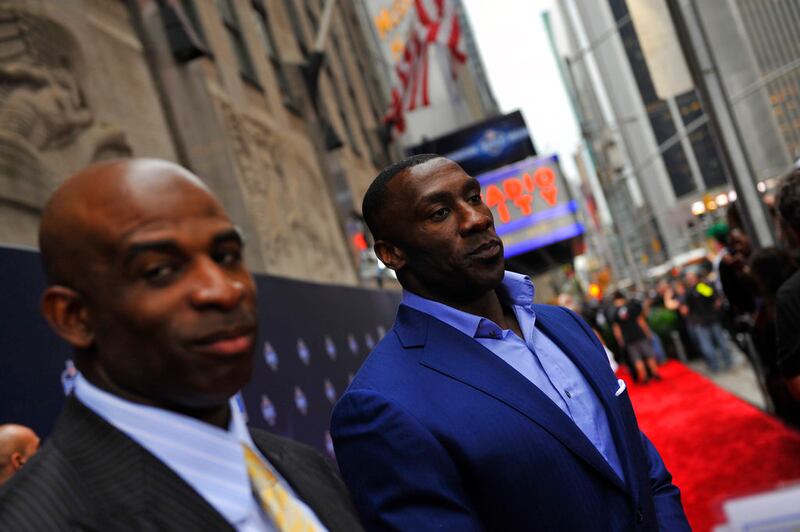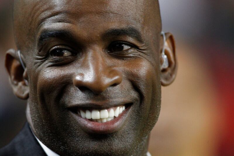 Deion Sanders Former NFL and baseball player Deion Sanders, walks on the field during the second half of an NFL football game between the Atlanta Falcons and the Tampa Bay Buccaneers, Thursday, Sept. 18, 2014, in Atlanta. (AP Photo/David Goldman) (David Goldman/AP)