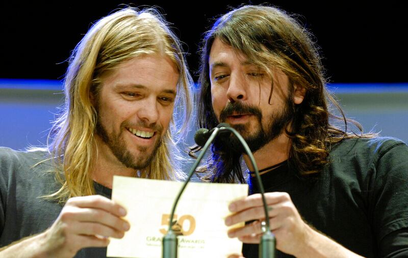Taylor Hawkins Foo Fighters Dave Grohl, right, and Taylor Hawkins announce nominees for the 50th Annual Grammy Awards during a news conference, Thursday, Dec. 6, 2007, in Los Angeles. The Grammy Awards will take place on Feb. 10, 2008. (AP Photo/Chris Pizzello)