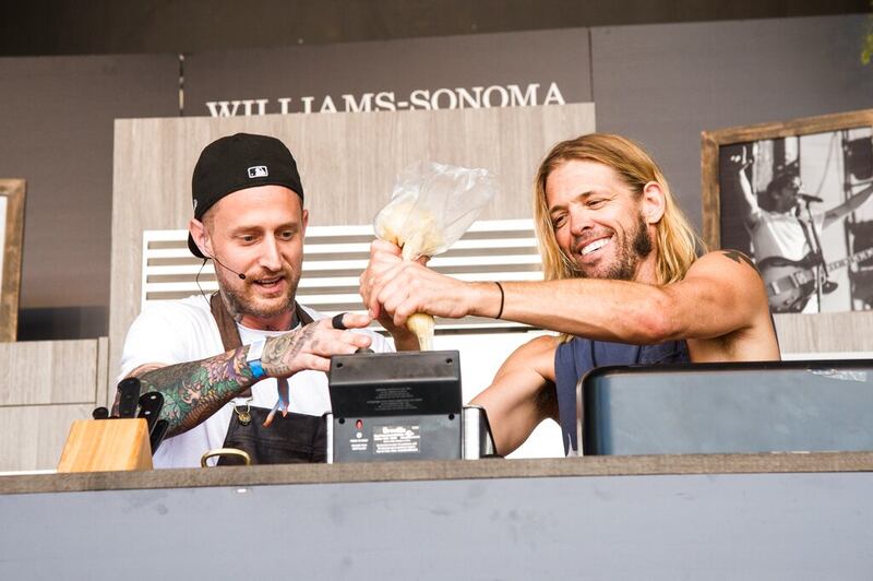 Taylor Hawkins Chef Michael Voltaggio, left, and Taylor Hawkins of the Foo Fighters attend a cooking demonstration at BottleRock Napa Valley Music Festival at Napa Valley Expo on Sunday, May 29, 2016, in Napa, Calif. (Photo by Amy Harris/Invision/AP) (Amy Harris/Amy Harris/Invision/AP)
