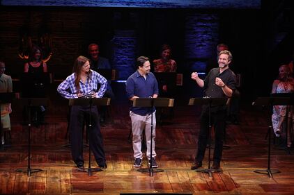 Dawson's Creek Class Reunion NEW YORK, NEW YORK - SEPTEMBER 22: Lin-Manuel Miranda, Joshua Jackson listen as Busy Philipps speaks onstage during the Dawson's Creek Class Reunion at Richard Rodgers Theatre on September 22, 2025 in New York City. (Photo by Cindy Ord/Getty Images for F Cancer) (Cindy Ord/Getty Images for F Cancer)