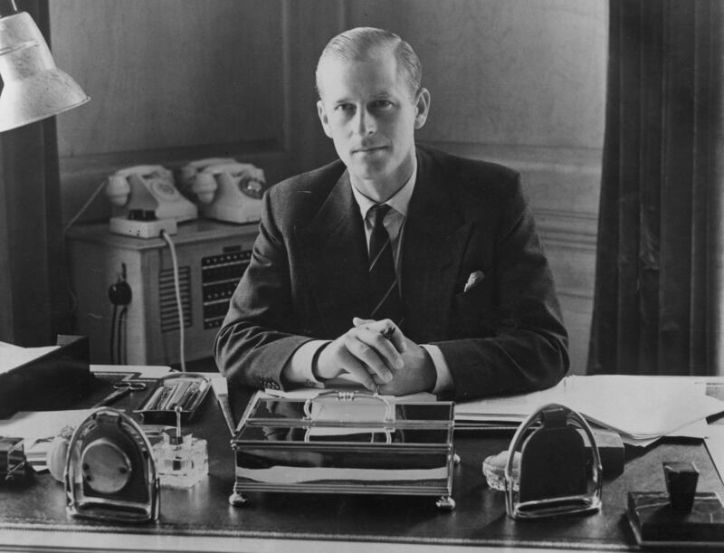 Prince Philip through the years 10th August 1951: Prince Philip, the Duke of Edinburgh, sitting at his desk at Clarence House. (Photo by Fox Photos/Getty Images) (Fox Photos/Getty Images)