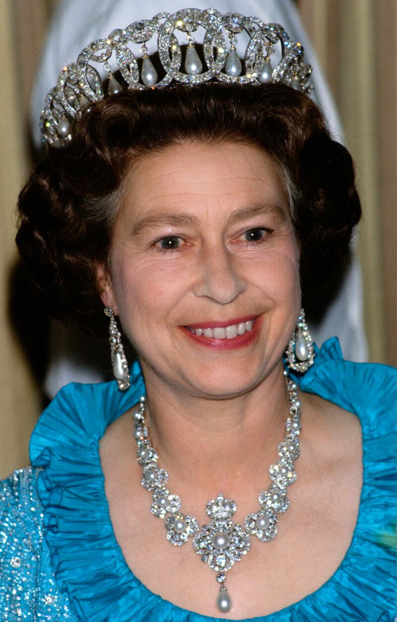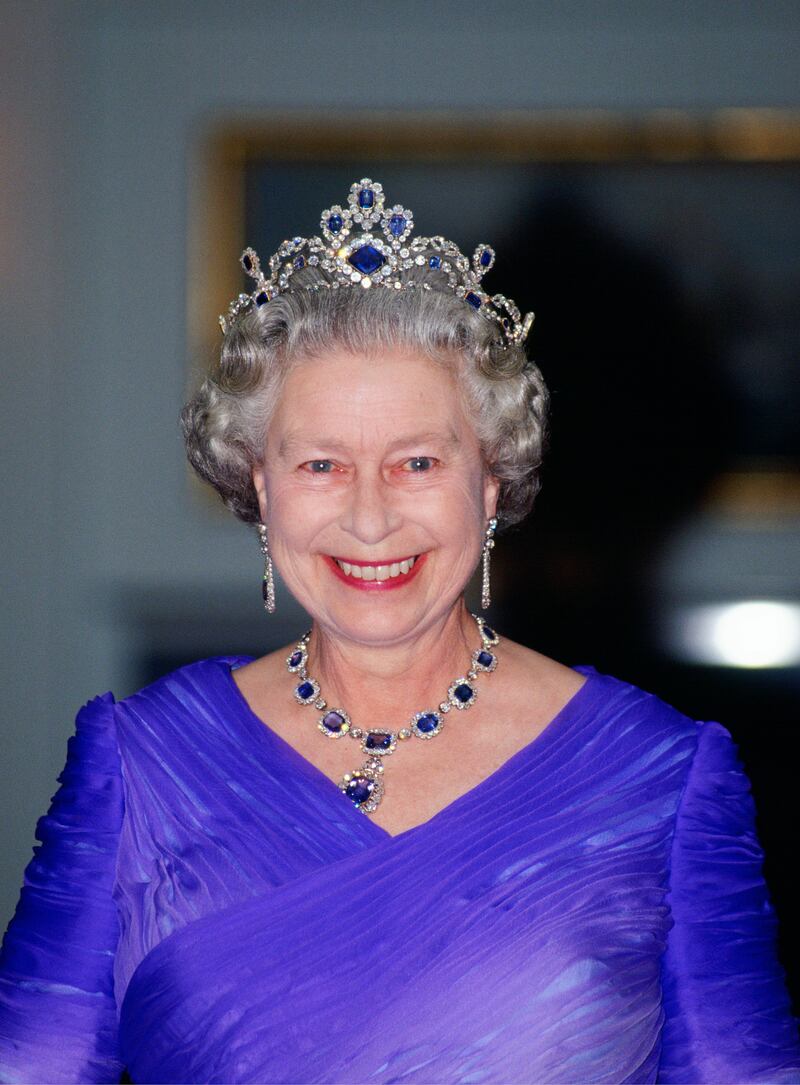 Photos: Queen Elizabeth II through the years 1992: Queen Elizabeth II wearing a formal evening dress for a banquet on board the Royal Yacht Britannia during her visit to France on June 11, 1992. (Tim Graham Photo Library via Getty Images)