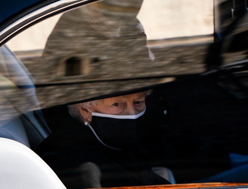 Queen Elizabeth II through the years 2021: Queen Elizabeth II follows Prince Philip, Duke of Edinburgh's coffin during his funeral at Windsor Castle on April 17, 2021, in Windsor, England. (Paul Edwards-WPA Pool/Getty Images)