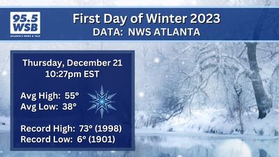 The Winter Solstice lands on Thursday, December 21 this year, and the average daytime high in Atlanta on this date is 55 degrees; the average morning low is 38 degrees.